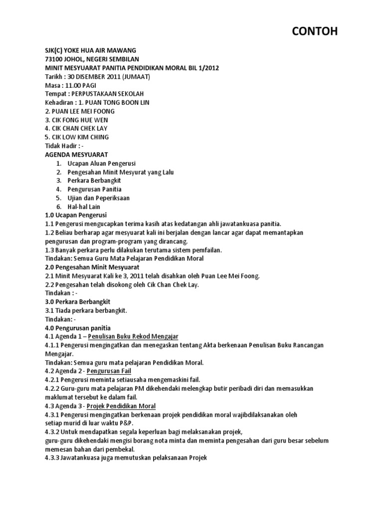 Contoh Minit Mesyuarat Pdf